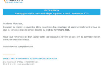 En raison du mardi 11 novembre 2025, la collecte des emballages [...]